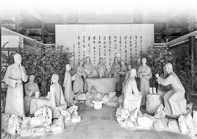 扬州八怪纪念馆中的“扬州八怪”群塑,居于中间位置者为郑板桥。扬州繁荣的经济与文化,为“扬州八怪”的形成提供了基础。扬州八怪纪念馆供图